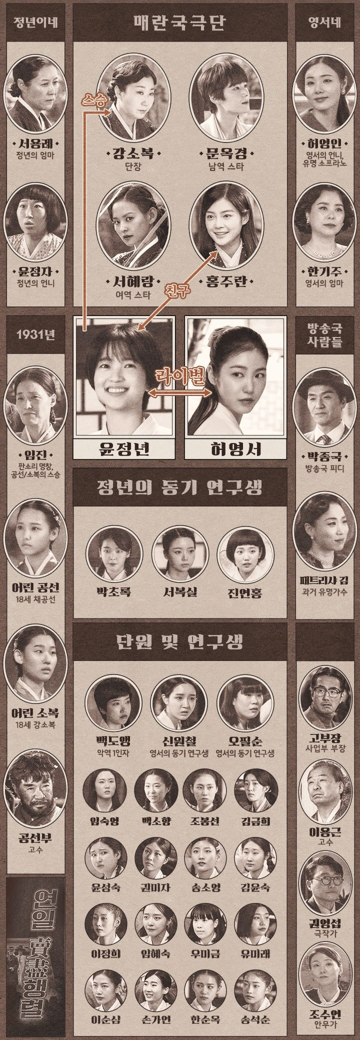 문옥경(정은채), 강소복(라미란), 서혜랑(김윤혜) 등 매란국극단의 다른 캐릭터들도 이 이야기를 더욱 풍성하게 만들어 줍니다.