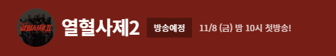 2024년 11월 8일 첫 방송을 앞두고 있는 <열혈사제2>! 팬들의 오랜 기다림을 충족시킬 수 있을지, 그 재미와 흥미진진한 전개를 함께 기대해 봅시다.