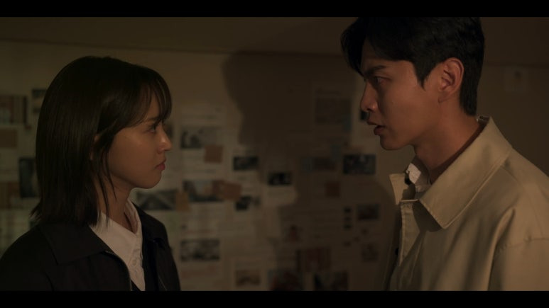 6회의 마지막 장면에서 정우와 민형은 이진석의 집에서 마주칩니다. 벽면 가득 붙어 있는 기사들과 민형의 사진은 이진석이 단순한 범인이 아님을 암시하며 긴장감을 고조시켰습니다.
